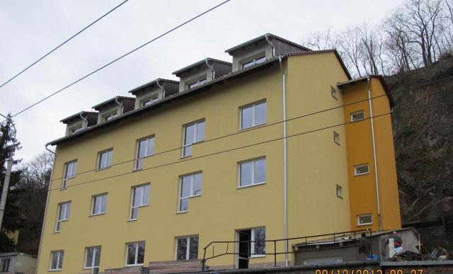 Zateplení a montáž fasády bytového domu, 100% dodávka vnitřních omítek